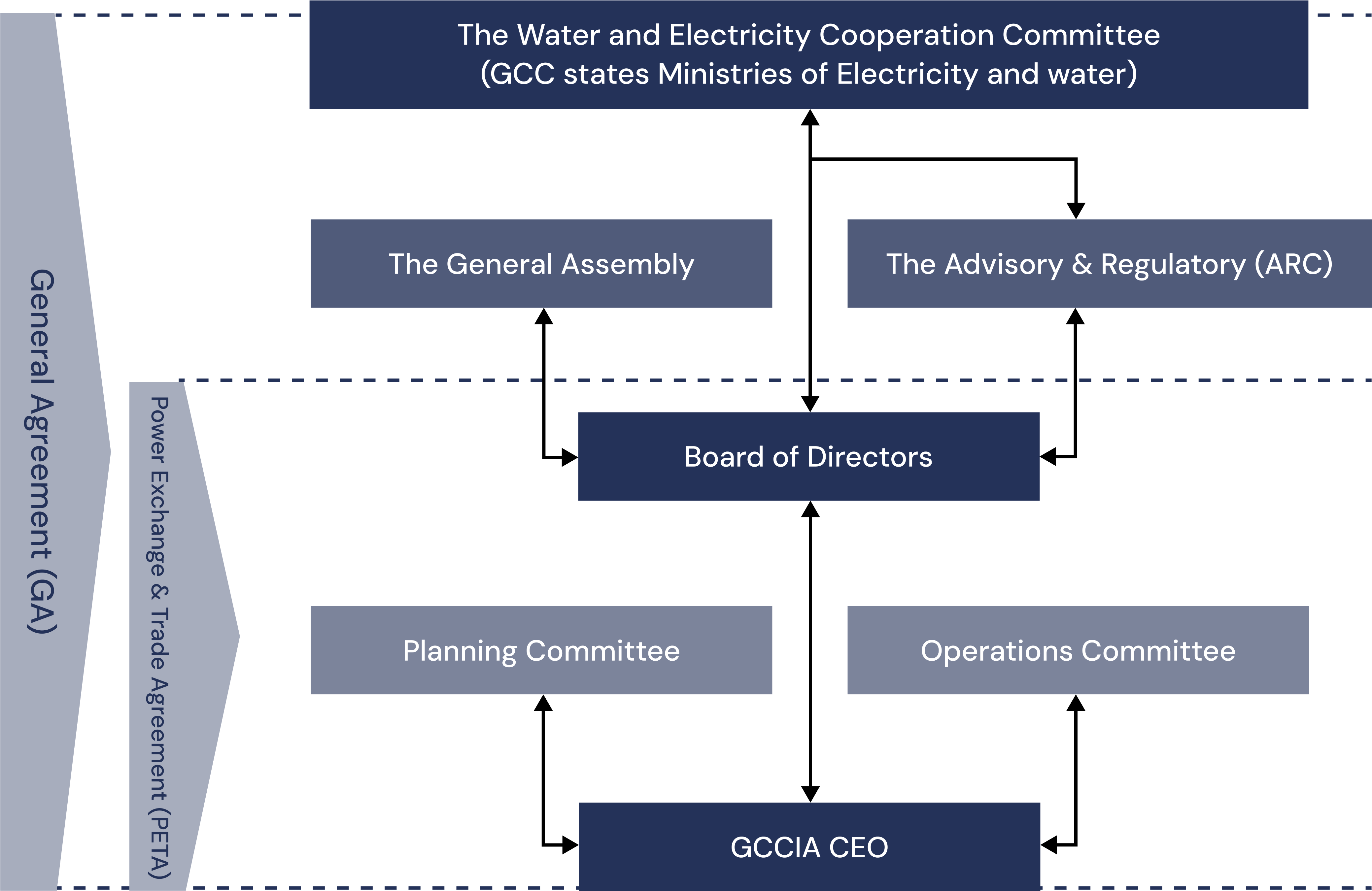 GCCIA’s robust governance system ensures transparency, accountability, and effective oversight, which is crucial for its role in connecting the power networks of GCC countries. With a structured framework involving the General Assembly, Board of Directors, and specialized committees, GCCIA aligns its operations with regional goals, safeguards member interests, and promotes energy security and economic stability across the region.