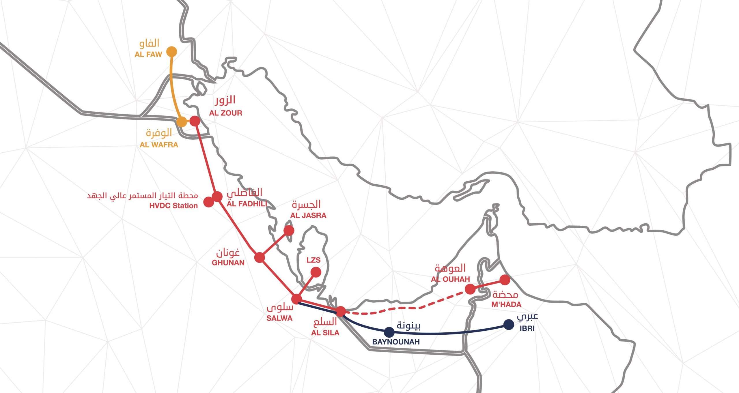 Currently, Oman's electricity network is connected to the GCCIA grid via the UAE's network at 220 kV with a capacity of 400 megawatts. Following comprehensive technical and economic feasibility studies, a decision was made to establish a direct interconnection between Oman and the GCC grid, aiming to unlock significant technical and economic benefits for both sides. The project involves constructing two 400 kV power transmission substations: the Ibri substation in Oman and the Baynonah substation in the UAE, along with expanding the existing Al-Sila substation. This interconnection will be supported by double overhead power lines operating at 400 kV, spanning a total length of approximately 530 kilometers.